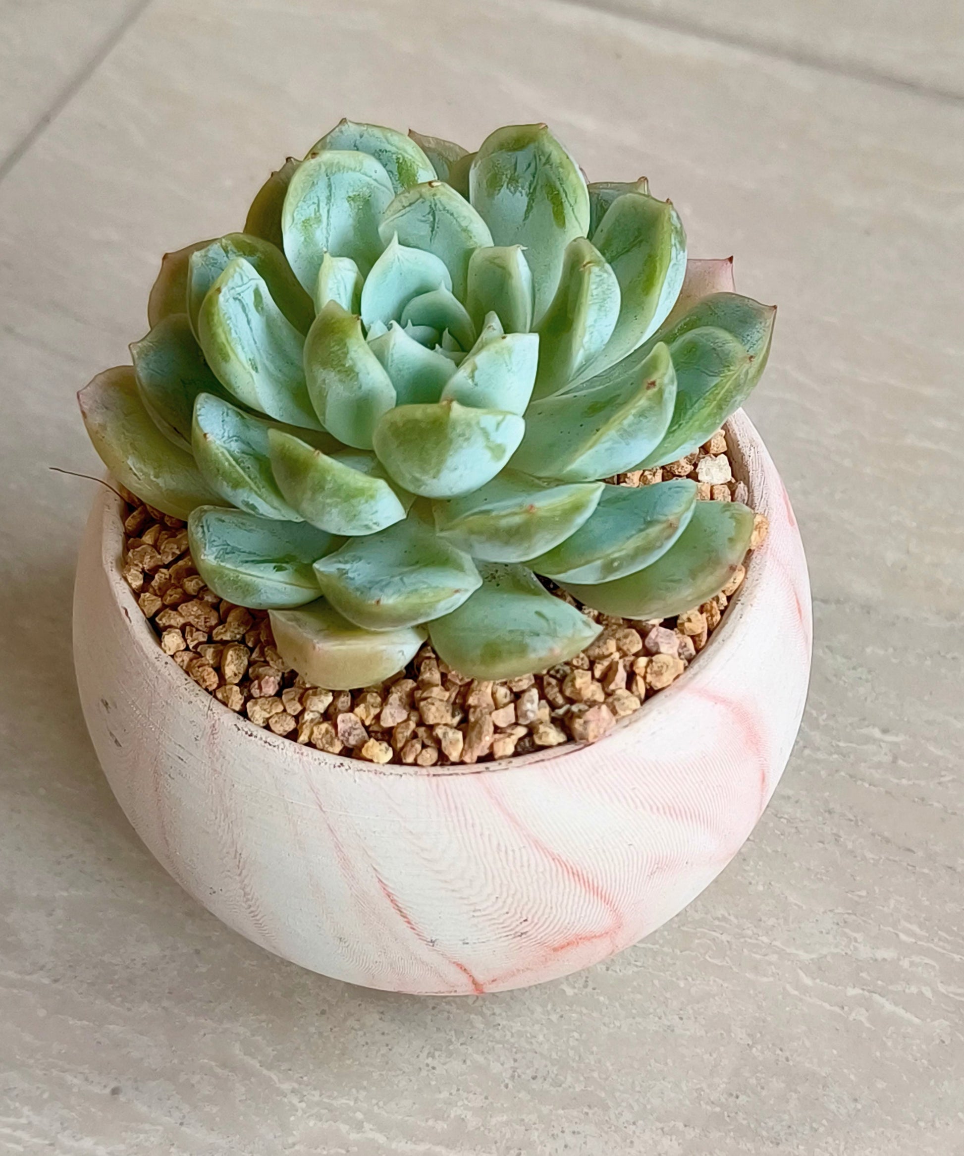 Succulent Elegant Round Orange Planter – Echeveria Elegans 'Mexican Snowball'