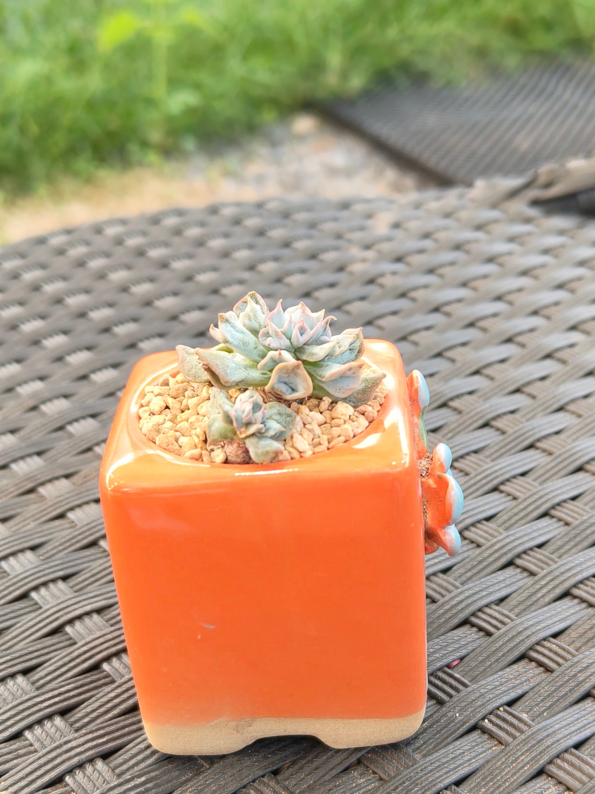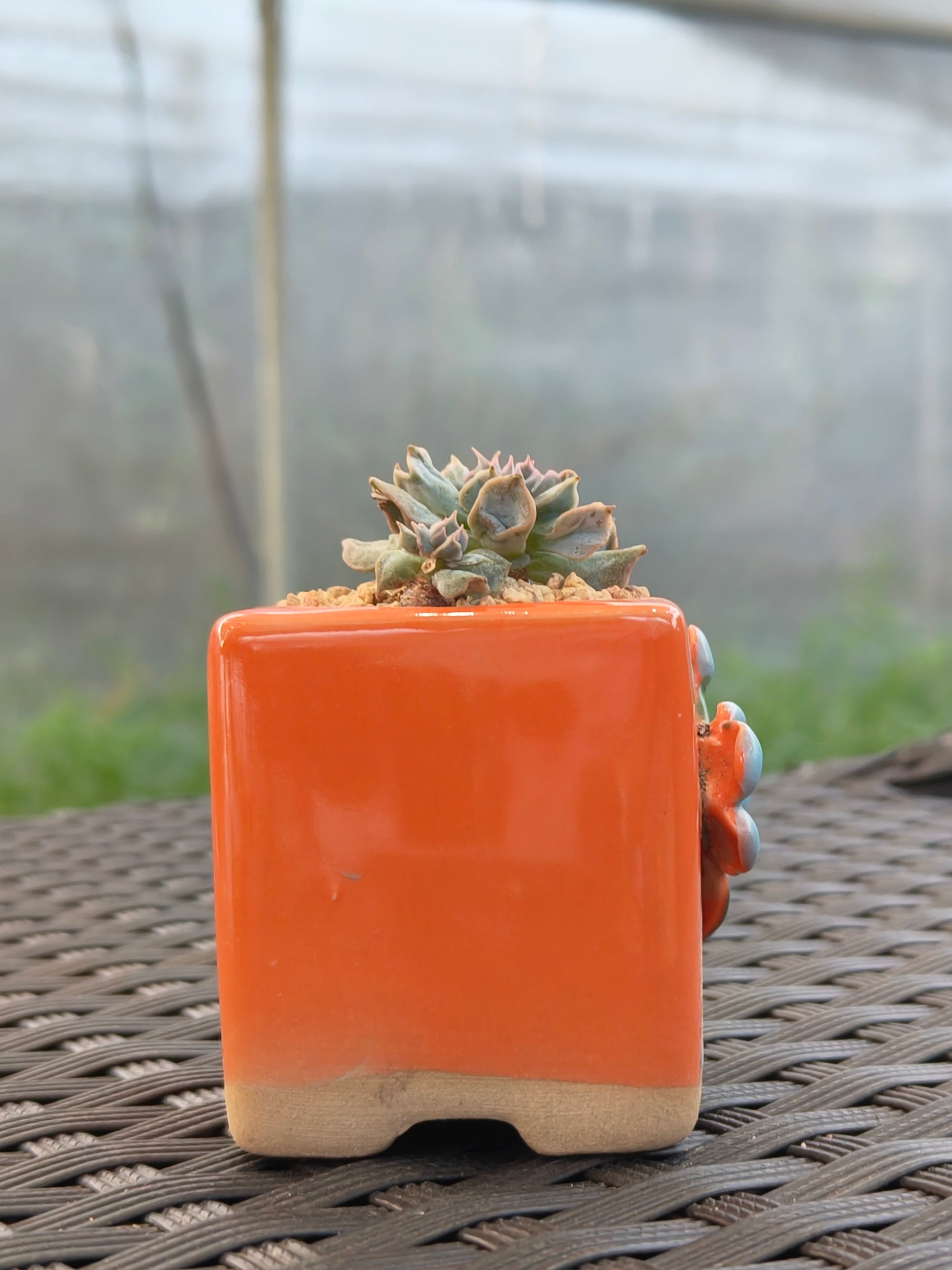 Succulent Floral Charm Orange Mini Planter – Echeveria 'Cubic Frost' (Botle tree)