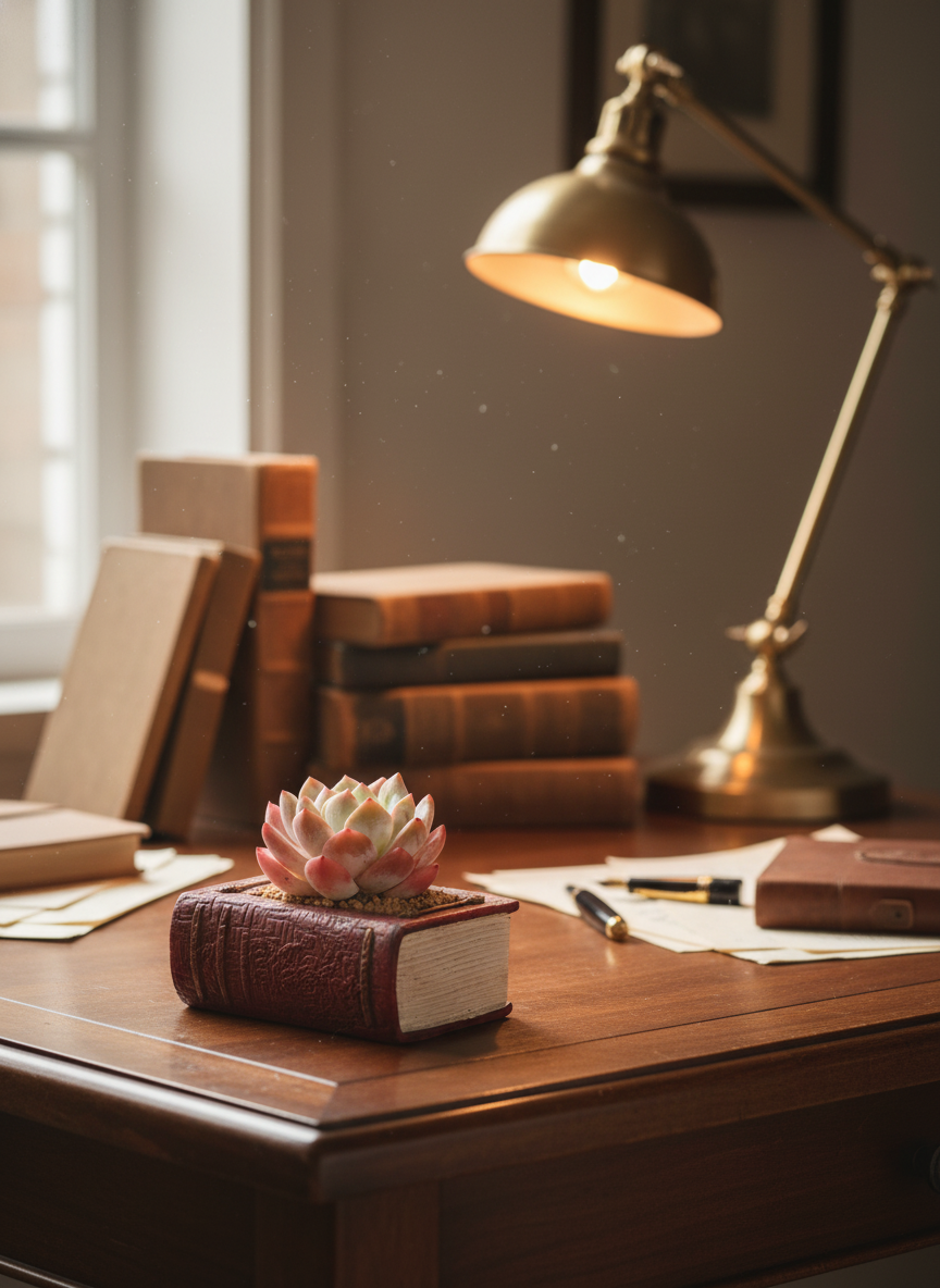 – Unique book-shaped planter that fits perfectly between your books