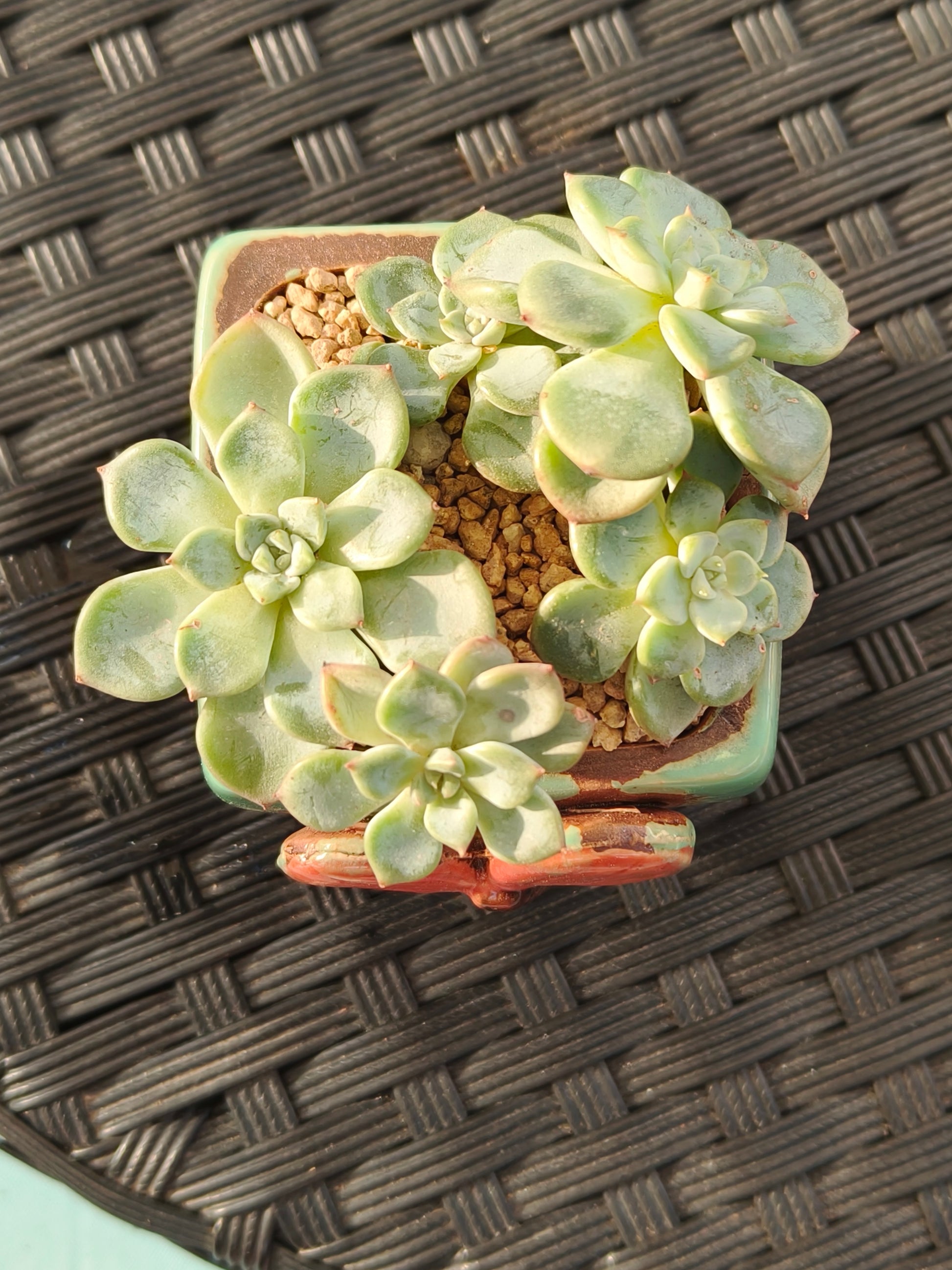 Succulent Ceramic Butterfly Square Teal Planter – Graptoveria 'Titubans'