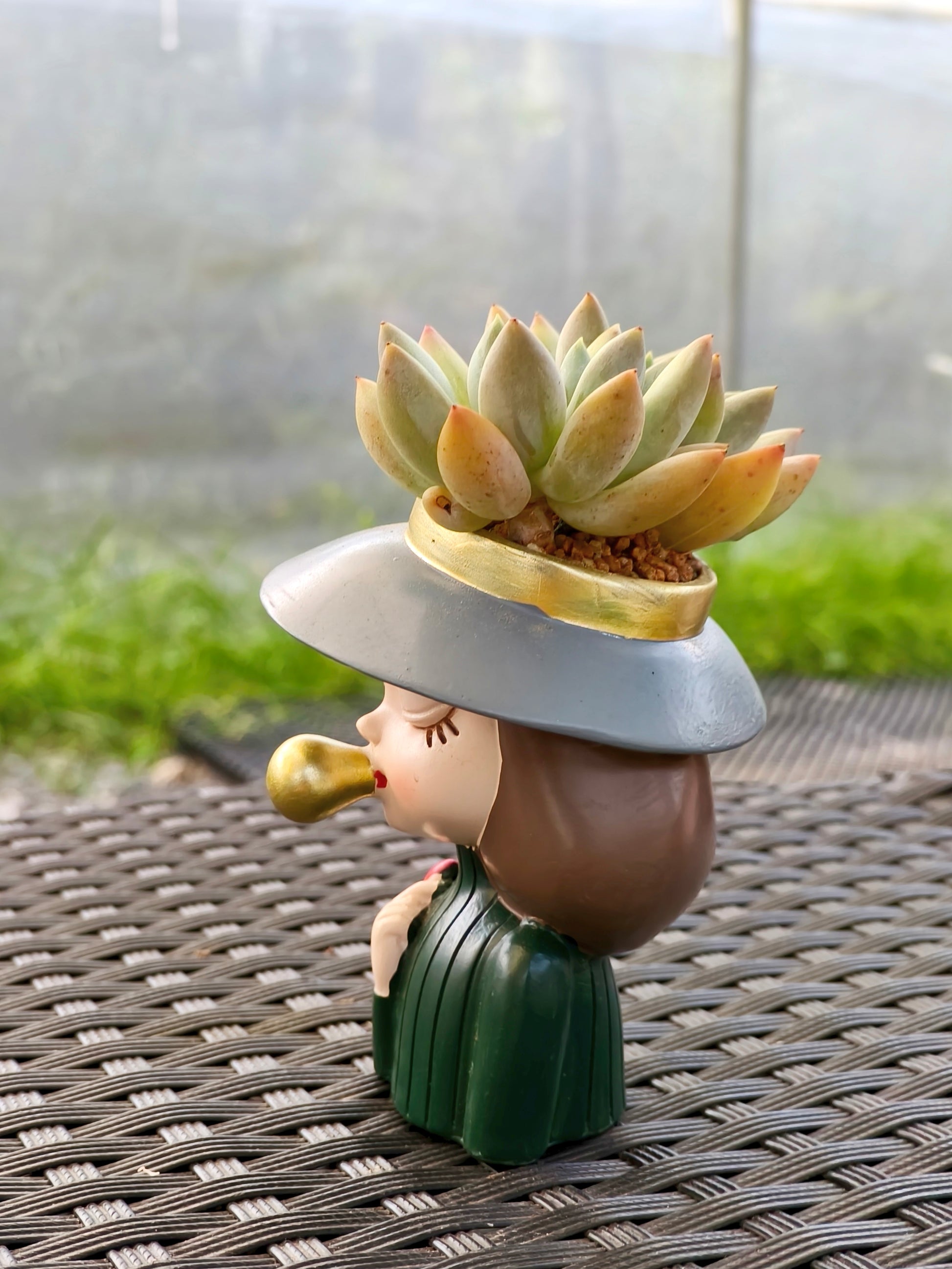 Succulent Girl Planter – Blowing Love with Pachyphytum 'Sky Beauty'