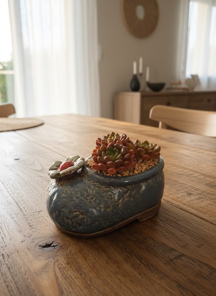 Add a touch of playful charm to your space with the Succulent Mary Jane Charm Violet Planter, paired with the vibrant Sedeveria ‘Pink Ruby.’ Set in a sweet, Mary-Jane–themed ceramic planter painted in soft violet tones, this piece blends whimsy with elegance. The lively pink-tipped rosettes of Pink Ruby bring an uplifting pop of color that instantly brightens any desk, shelf, or gifting moment. A delightful choice for collectors and anyone who loves character-filled décor.
