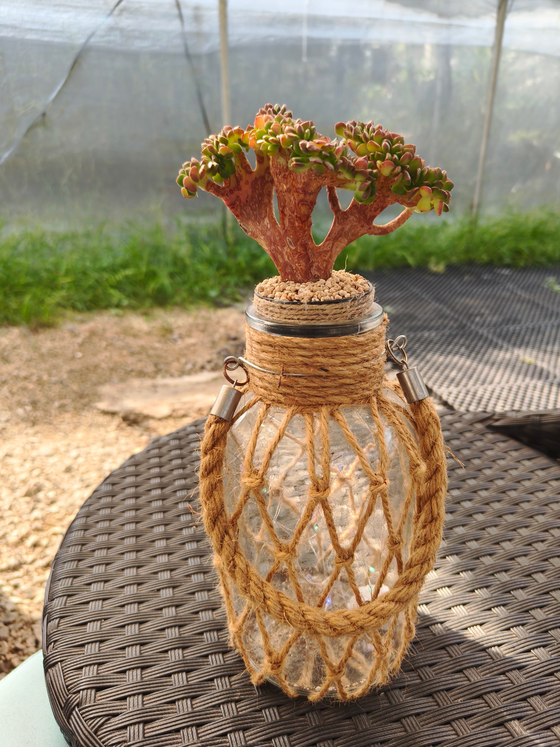 Bring a touch of natural artistry into your space with the Succulent Retro Hemp Rope Vase. This handcrafted vase, wrapped in rustic hemp rope, combines vintage charm with organic texture, making it a standout piece for any home or office.