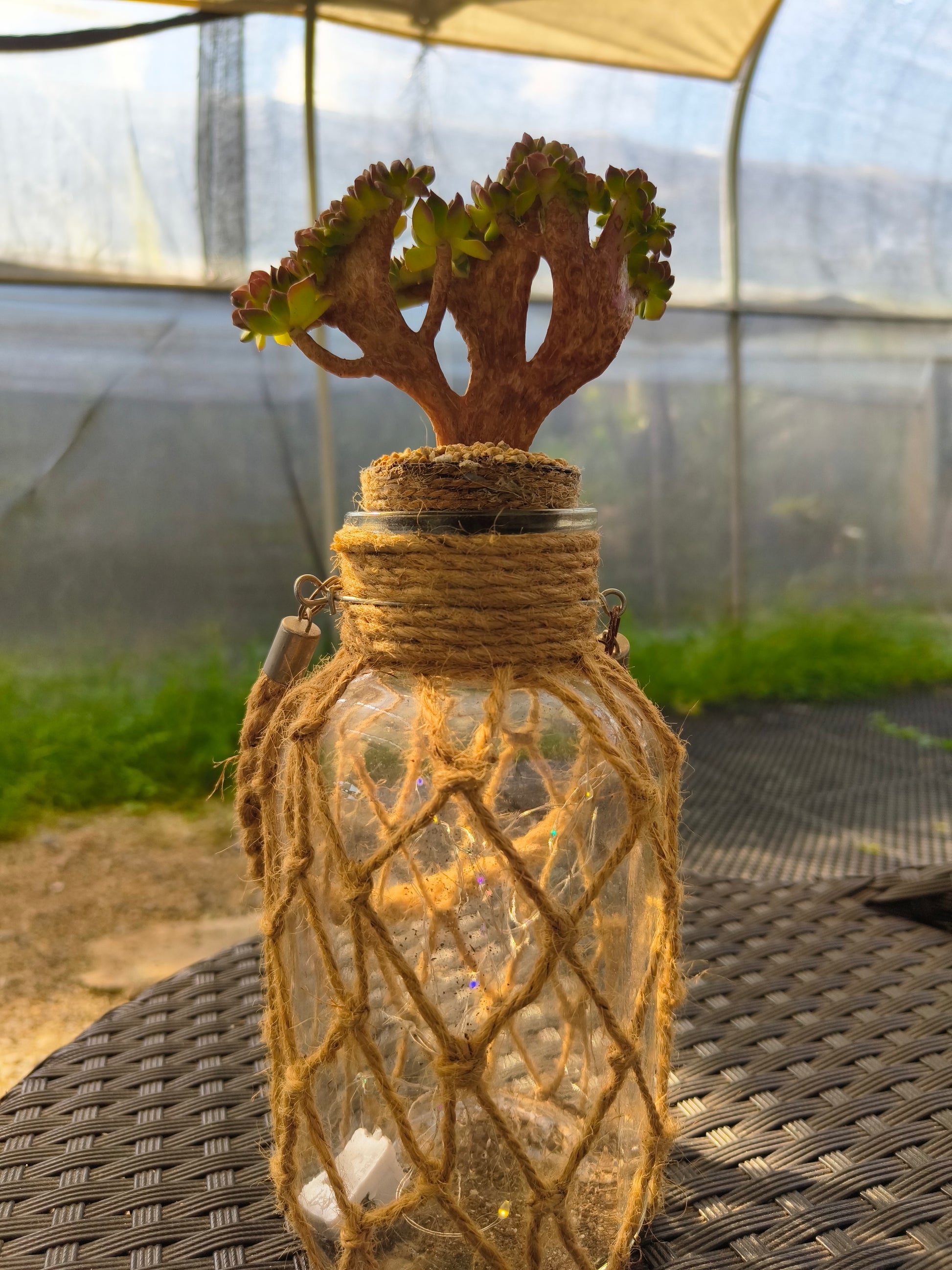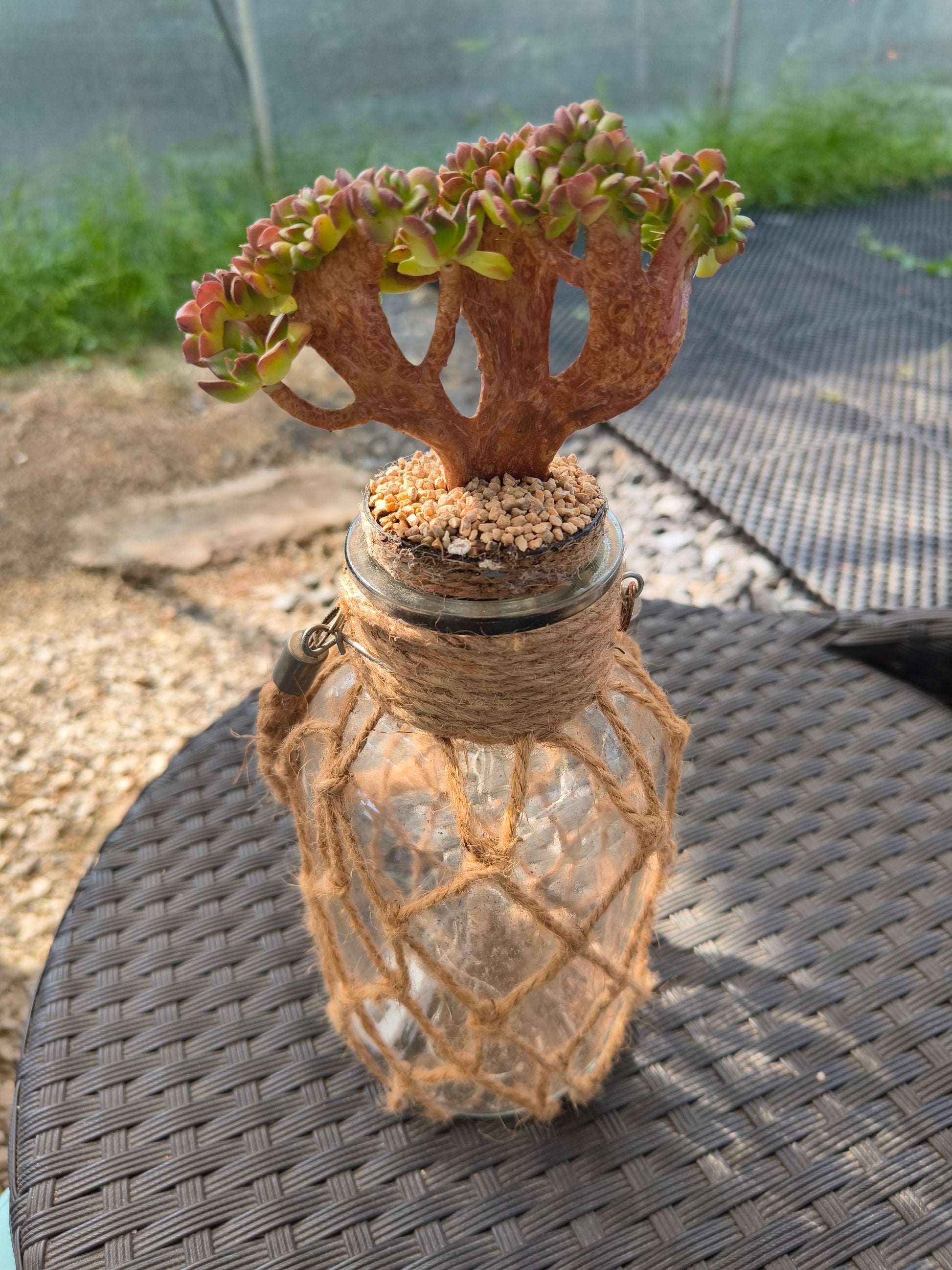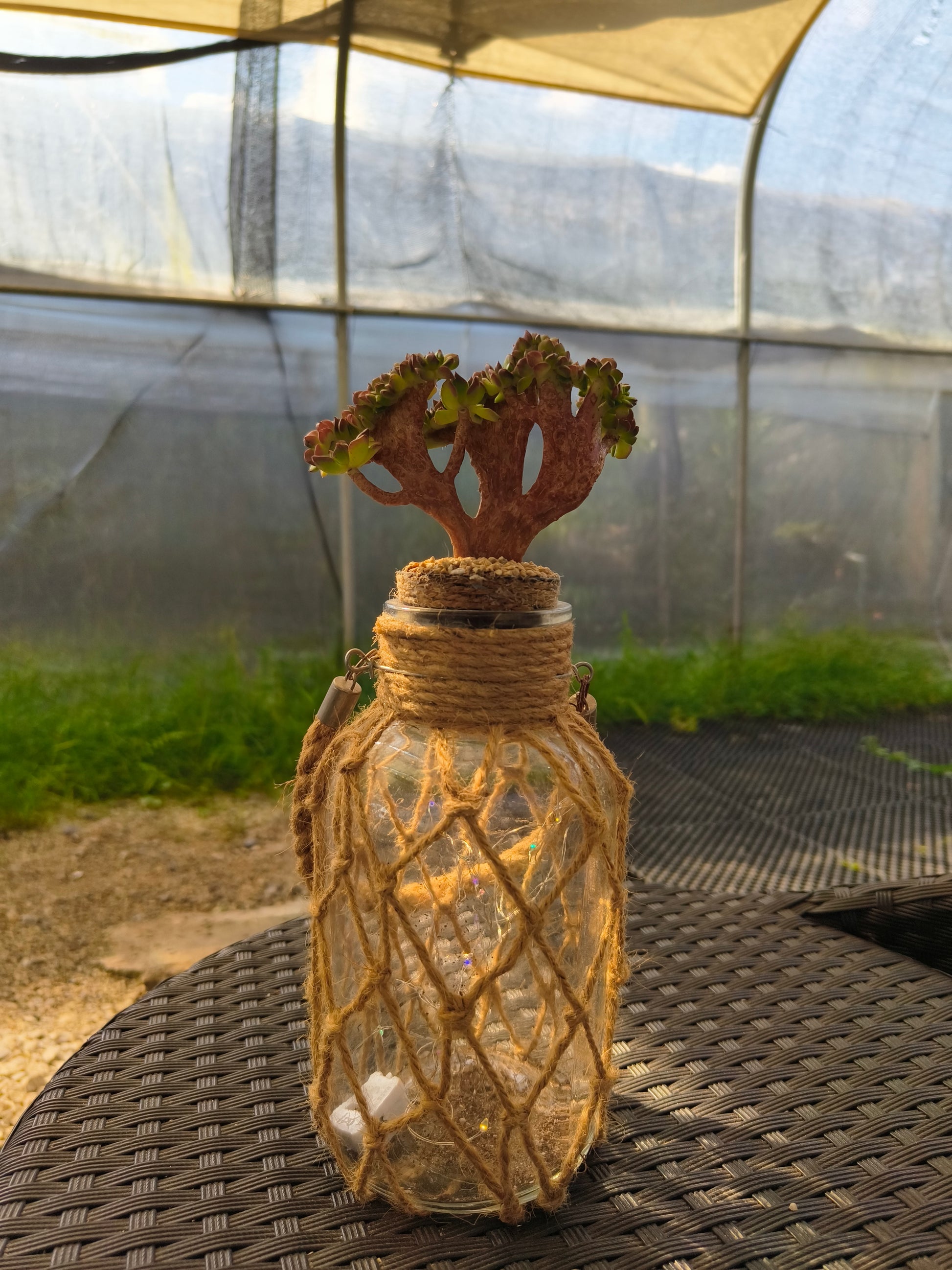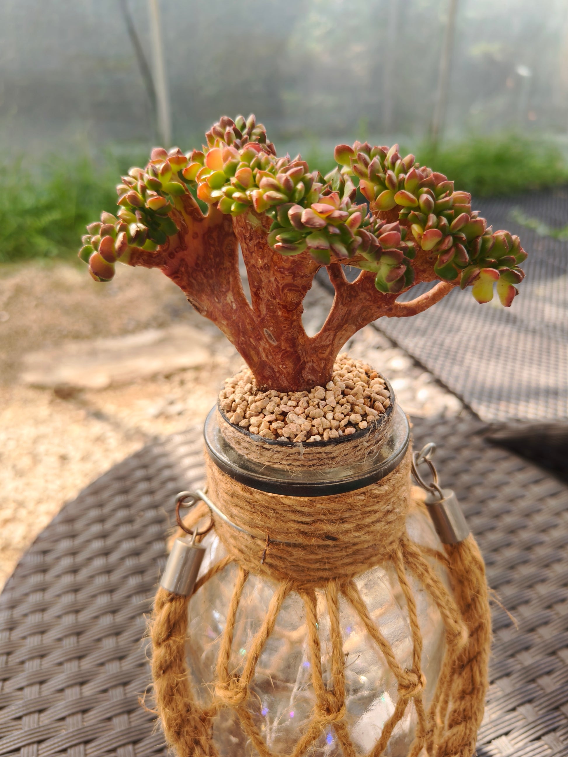 A miniature bonsai-inspired succulent paired with a rustic vase—bringing charm, creativity, and nature’s artistry into any space.