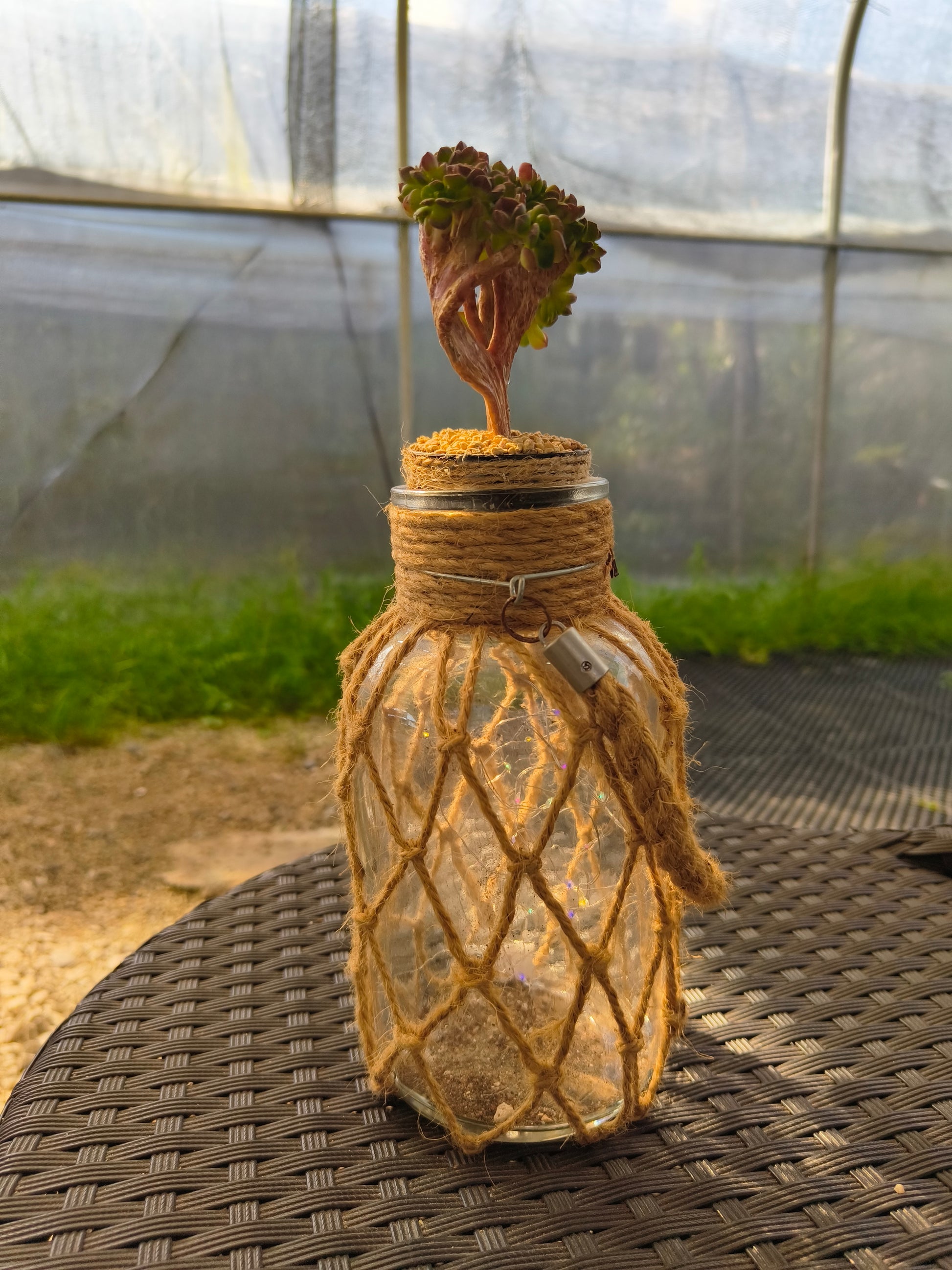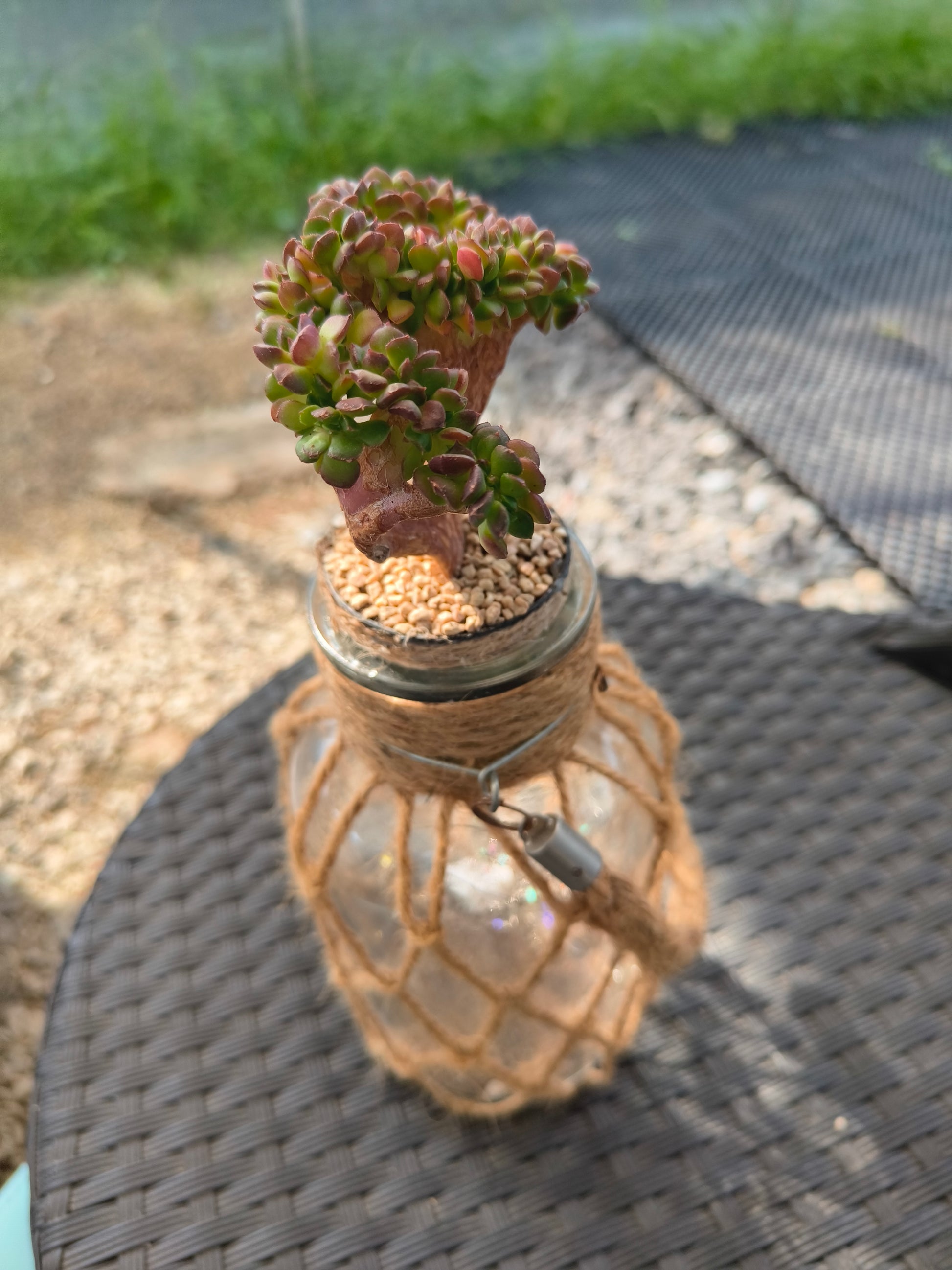 Succulent Retro Hemp Rope Vase - Sedeveria 'Letizia' crista