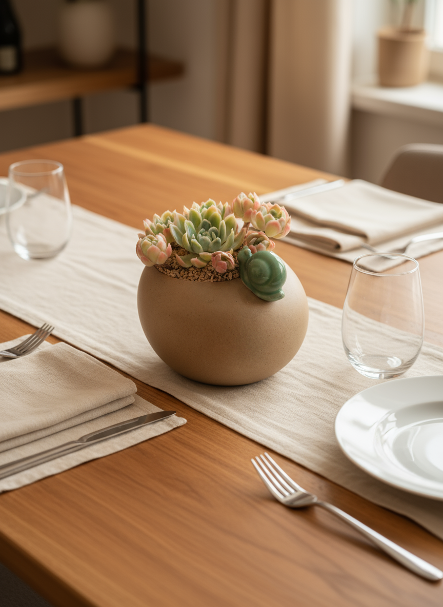 Bring a touch of playful elegance to your space with the Succulent Snail Planter. This vibrant Echeveria Elegans ‘Raspberry Ice’ features delicate rosettes in soft pink and green hues, nestled in a matte ceramic planter adorned with a charming snail figurine at the rim. Its rounded, low-profile design makes it a whimsical yet stylish addition to any shelf, desk, or windowsill.