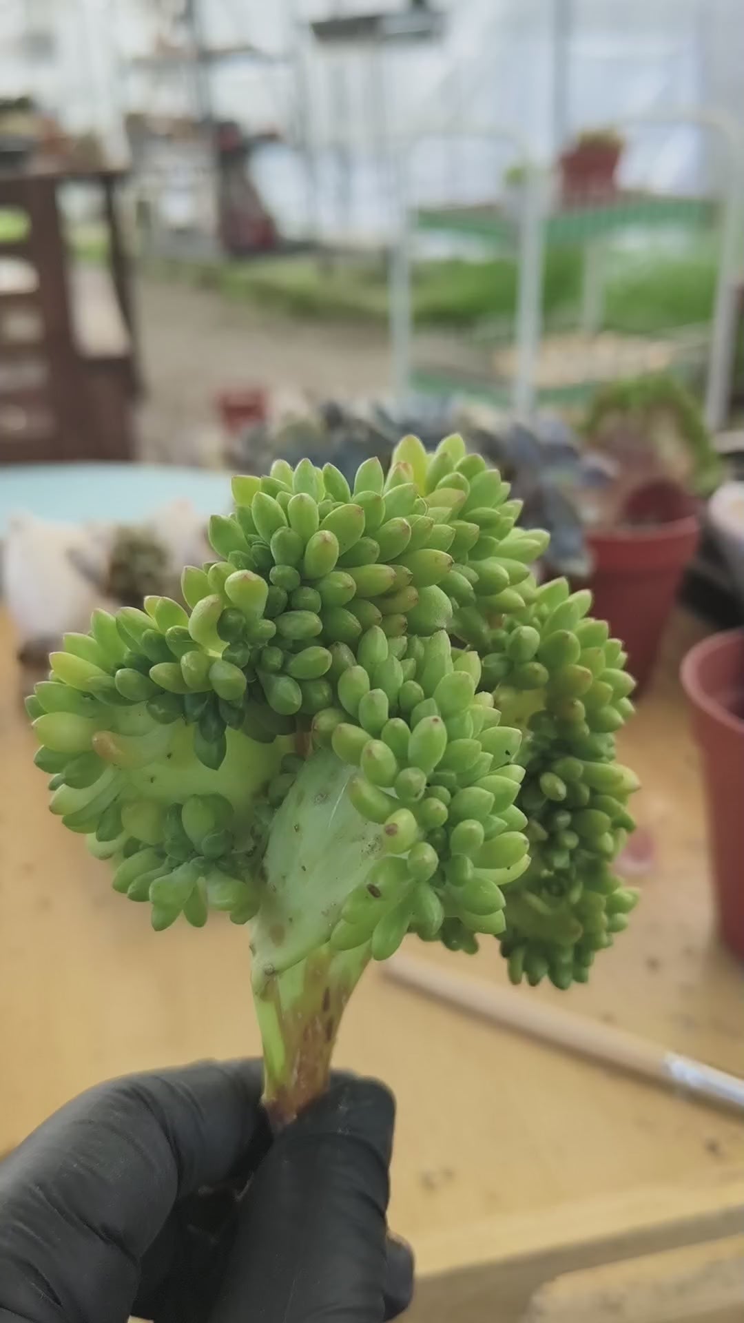 Unusual, sculptural, and full of character—the Crested Sedum ‘Alice Evans’ is a true collector’s gem. With its rippling, fan-like crested form, this succulent creates a living piece of art that shifts and curves with natural elegance. Its plump green leaves, kissed with soft pastel tones, make every angle a delight to admire.