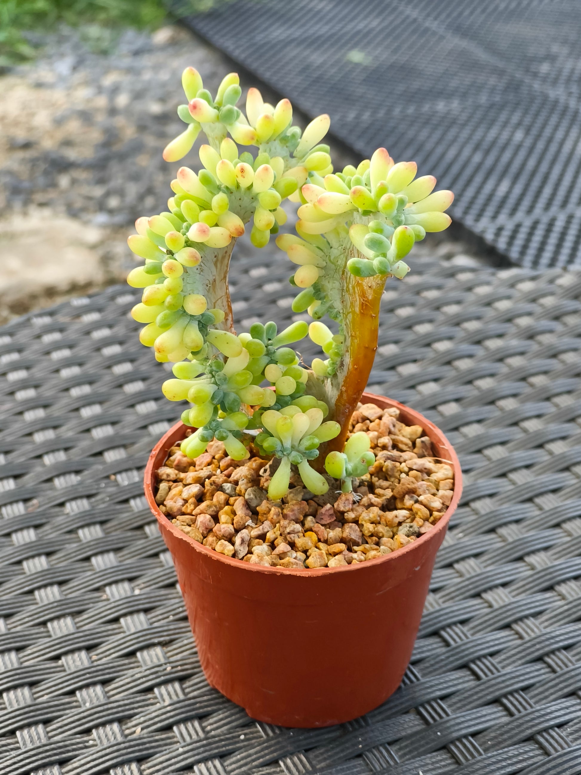 Sweet, colorful, and full of charm—meet the Succulent Starter Planter featuring Sedum Pachyphyllum ‘Jellybeans’. Known for its plump, bean-shaped leaves that shift in color from green to rosy red under sunlight, this playful succulent is a favorite among beginners and collectors alike.