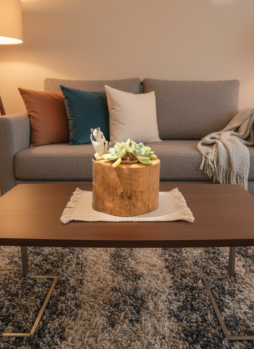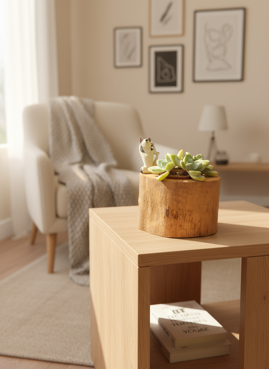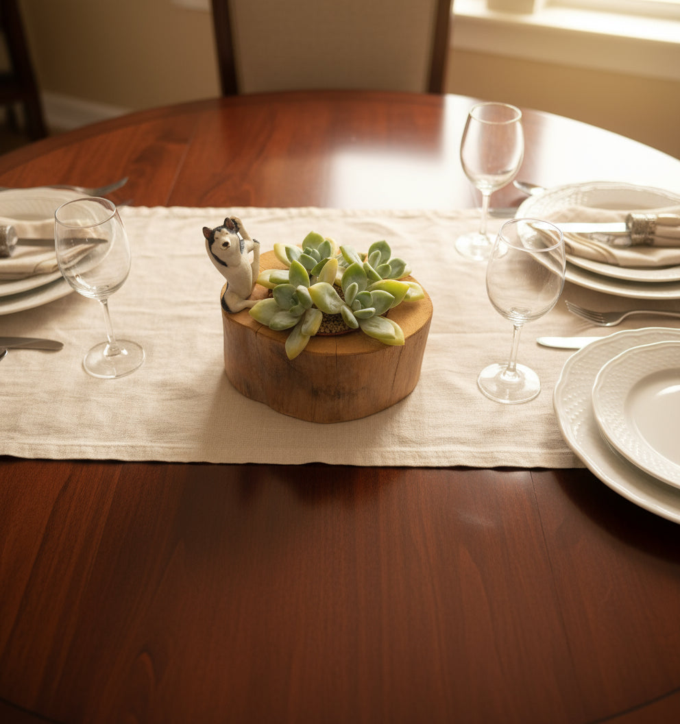 Bring a touch of woodland serenity to your space with this handcrafted log-inspired planter, complete with a whimsical yoga husky figurine. The rustic design mimics the natural texture and warm brown tones of real wood, creating the perfect backdrop for the lush greenery it holds.